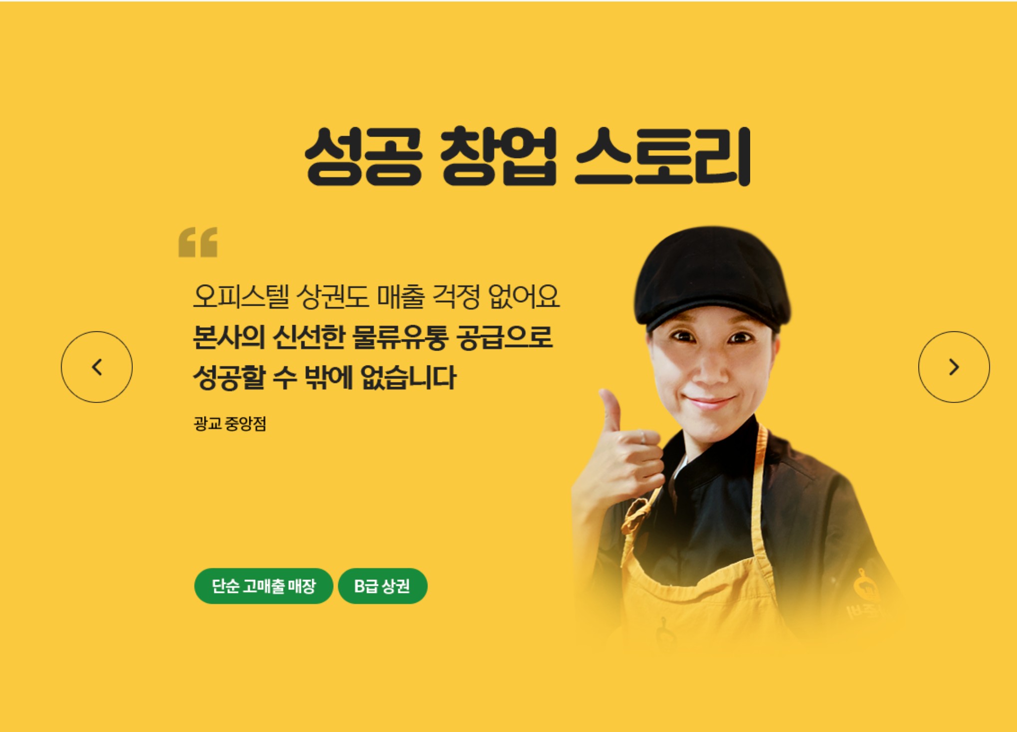 체계적인 본사 지원 시스템과 꾸준한 신메뉴 출시를 통해 고객들의 니즈에 맞는 메뉴를 지속적으로 내놓음으로써 고객들의 재방문 또한 꾸준하게 이어지고 있습니다.