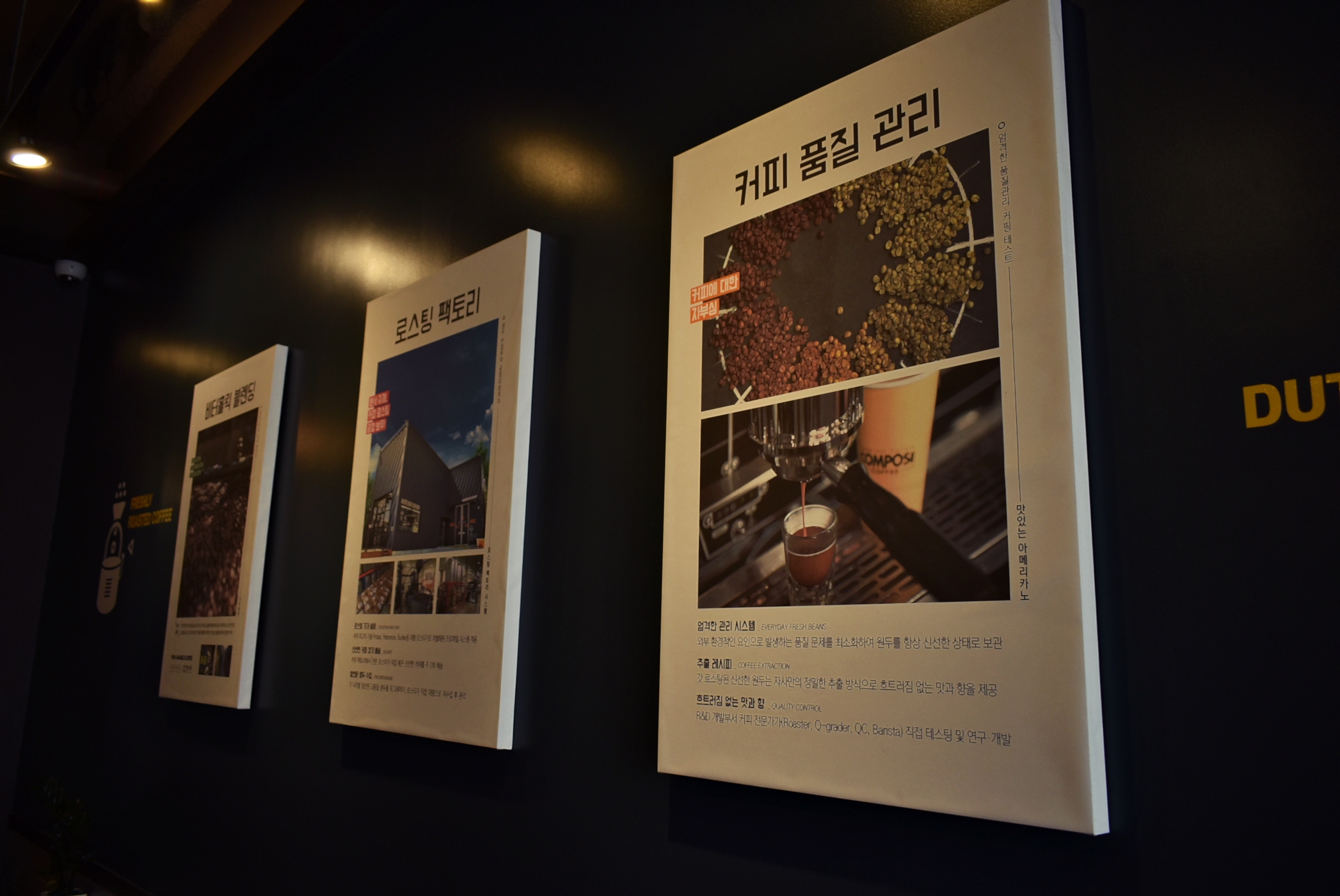 매장 한쪽에 로스팅 팩토리를 통해 커피 품질 관리를 철저하게 하고 있다는 것도 포스터를 통해 확인할 수 있었는데요.