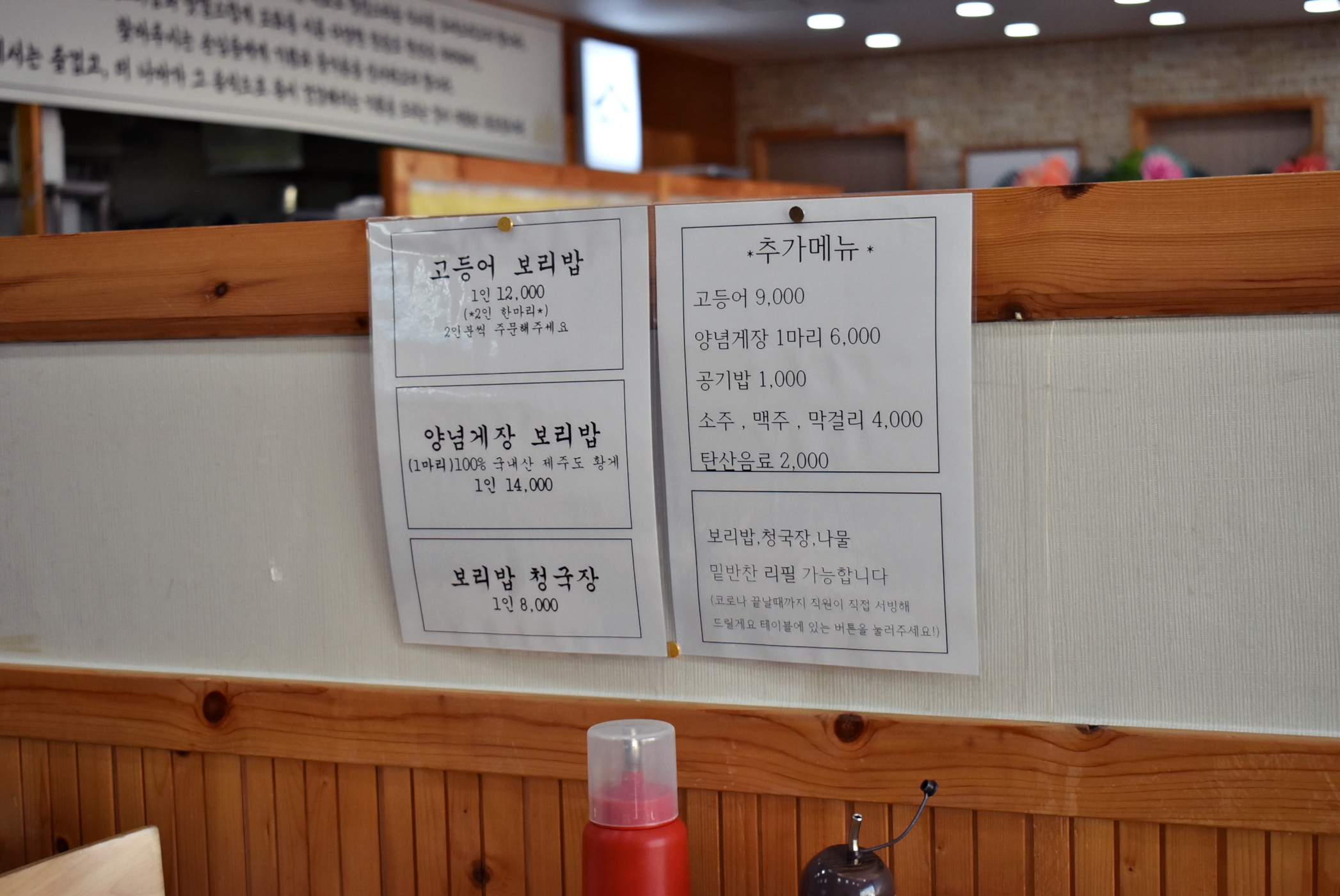 여기에 고등어나 양념게장을 추가해 먹는 고등어 보리밥과 양념게장 보리밥 정식이 있어 저흰 고등어와 양념게장을 같이 먹을 수 있는 구성으로 3인분을 주문해 먹고 왔습니다.