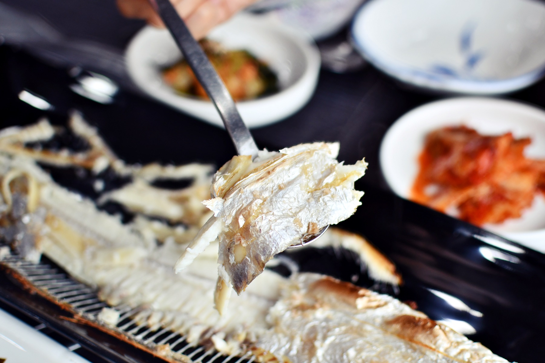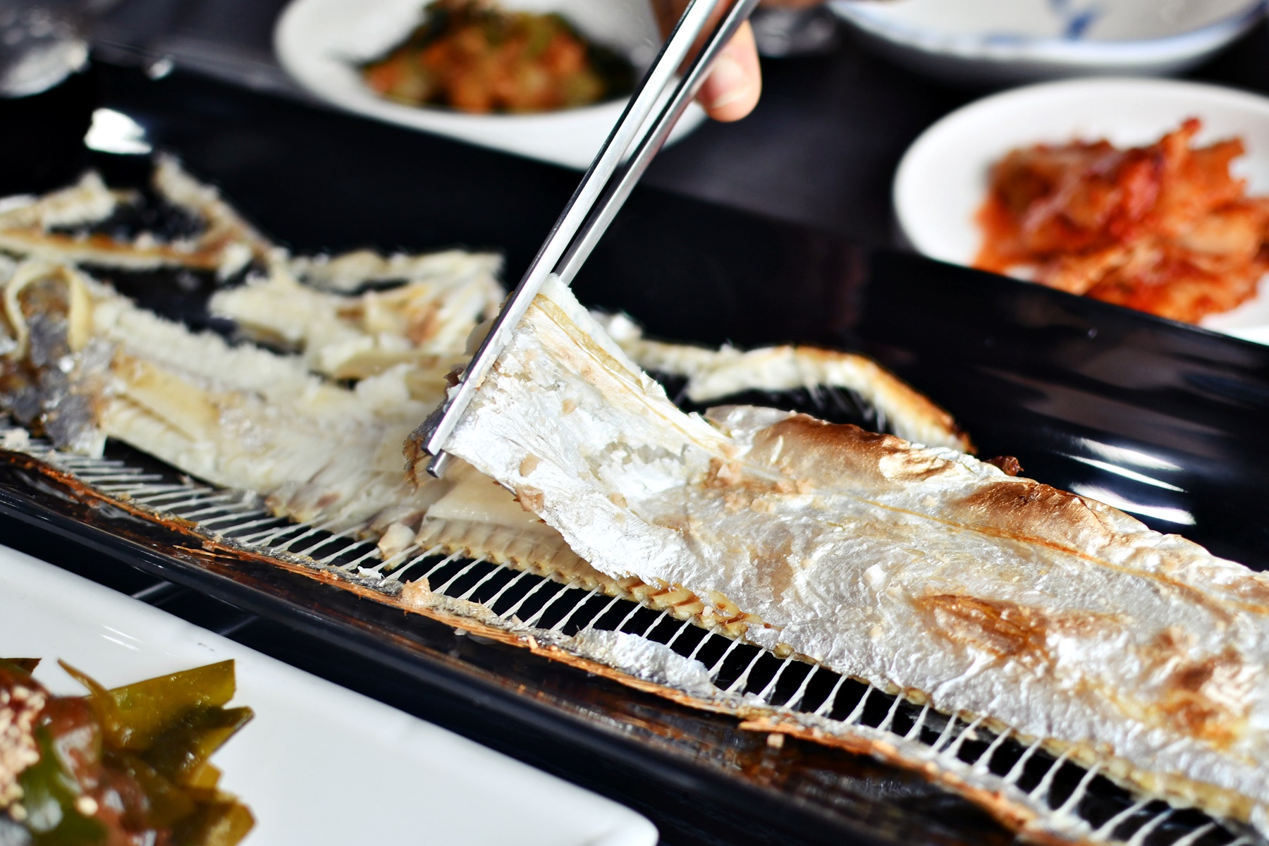 통갈치구이는 일단 갈치 뼈가 큰 편이라서 먹기 전 갈치 뼈 해체 작업(?)을 해준 다음 갈치살만 쏙 발라내서 먹으니 편리하게 먹을 수 있었어요.