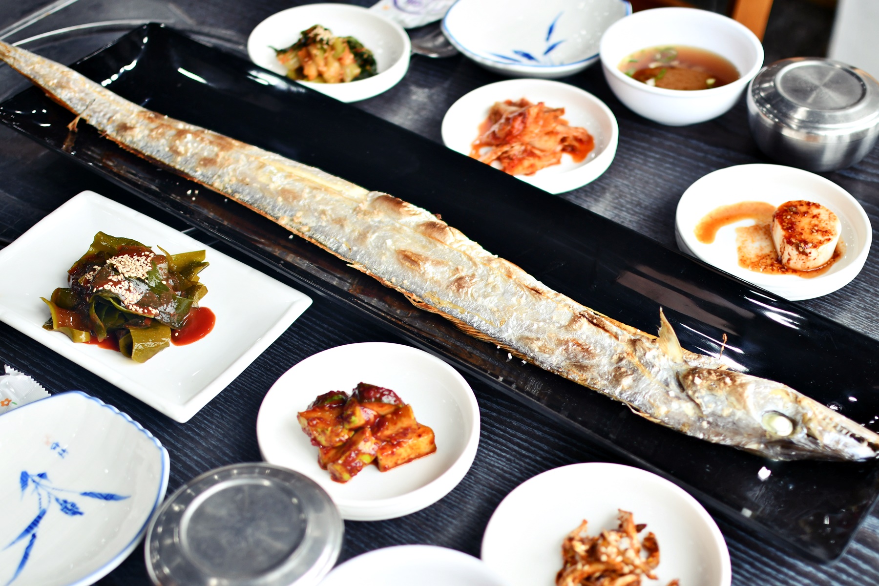 기본 1층 매장 공간이 넓은 편이라 1층 창가 쪽 테이블에 자리를 잡아 식사하면 바다 보면서 식사가 가능해 바닷가 근처에 위치한 식당을 찾을 때 가기에도 괜찮은 편입니다. 메뉴 종류는 광어나 참돔 세트에 통갈치구이와 갈치살 조림 같은 메뉴가 인기 메뉴라서 그중에 통갈치구이(중)를 주문해 먹고 왔어요!