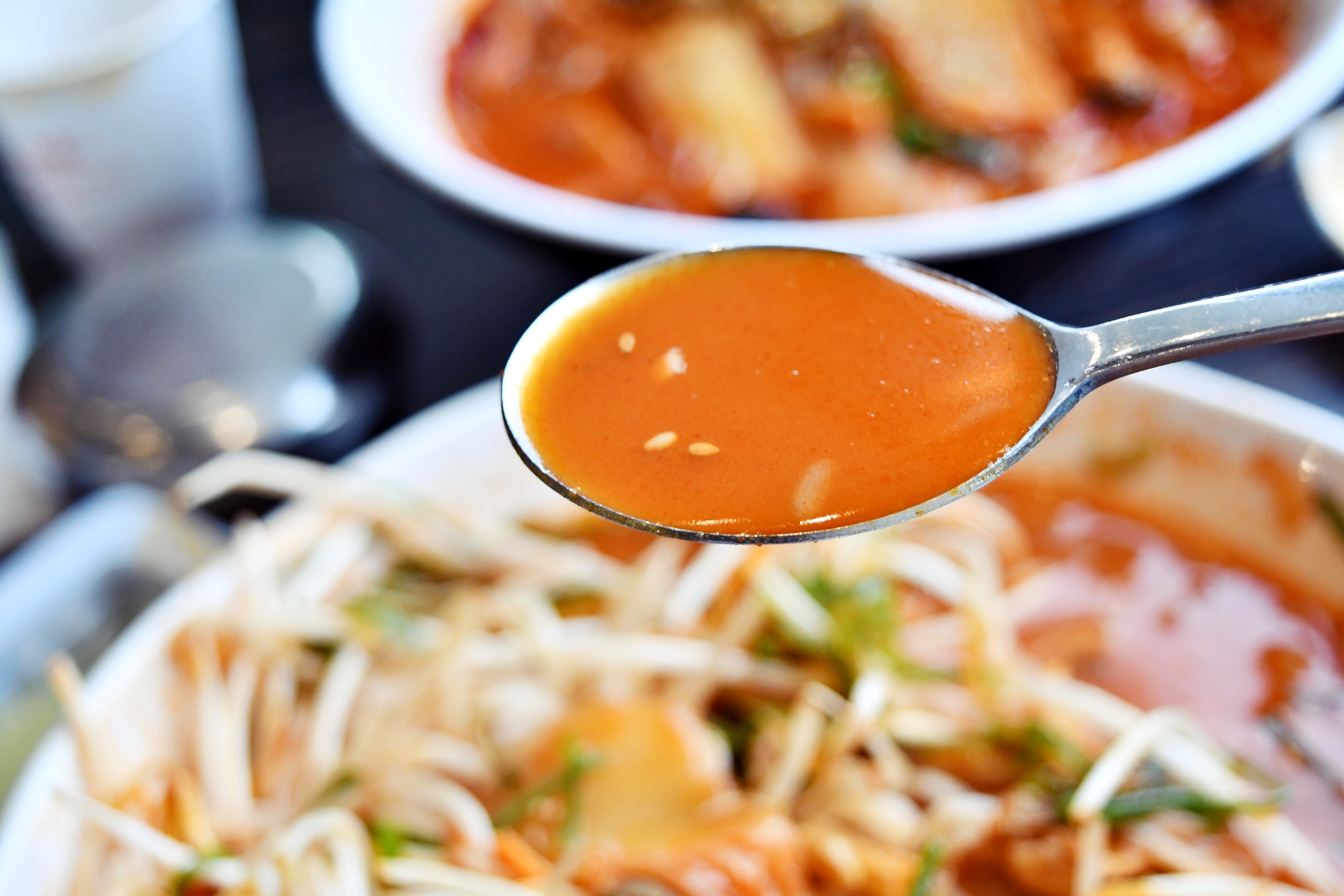 아삭한 숙주와 함께 먹는 쌀국수 면발의 쌀국수 짬뽕 역시 국물과 함께 깔끔하면서 얼큰하게 먹기 좋았고요. 기본적으로 너무 맵지 않으면서 입맛에 잘 맞는 국물 맛이 좋아 해산물과 같이 먹는 식감이나 맛이 괜찮았습니다.